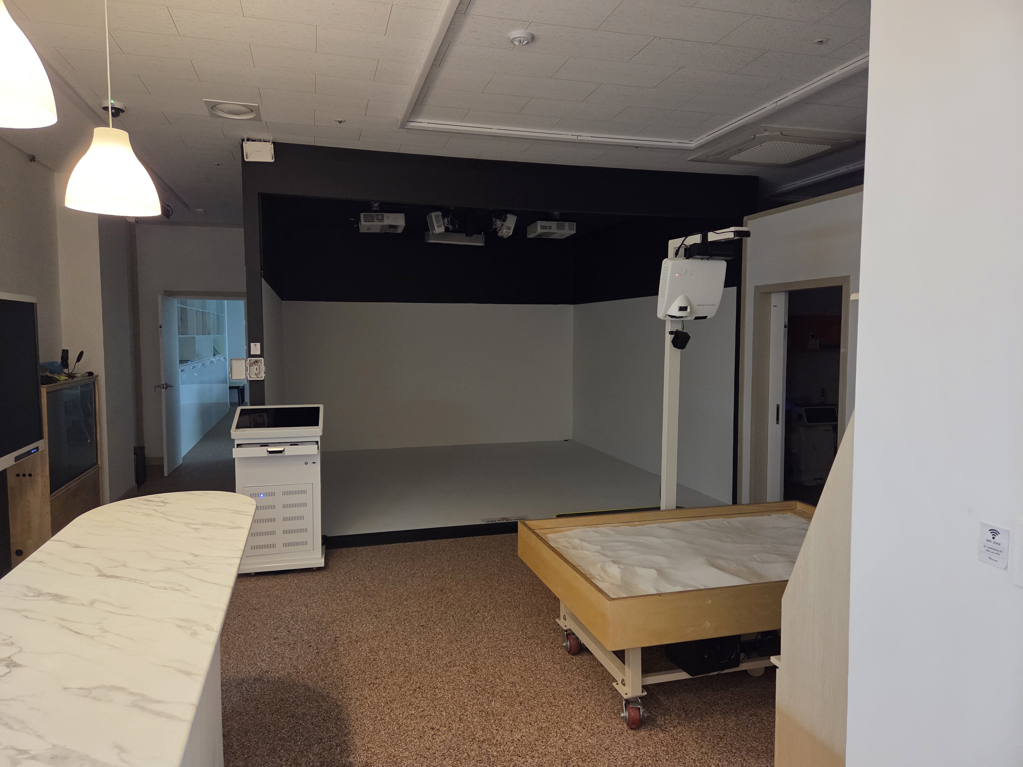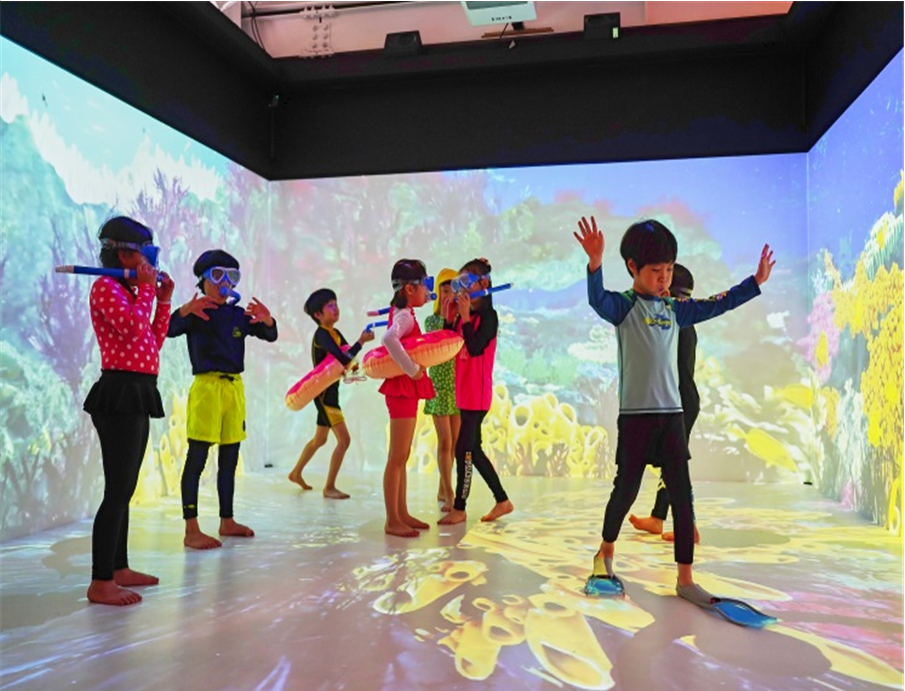 AR Sand Play: Combines tactile sand play with real-time AR graphics, stimulating imagination, reducing stress, and supporting emotional stability.